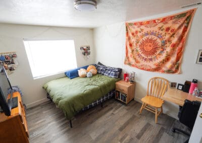 The majority of people who live here are students at SUU, but there are several tenants who are not. Some people are just working. Others are going to a trade school, like Evan’s Hair College or one of the Massage therapy schools. All the residents in the complex are single, in the college age group.