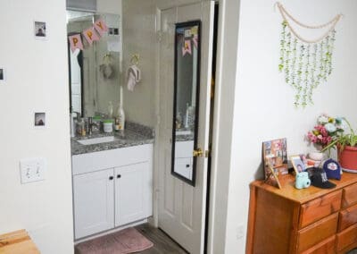 Each apartment has three bedrooms with a private bathroom and a walk-in closet. Any bedroom in the apartment can be a shared room or a private room. You will share the living room and kitchen with the other tenants. Each bedroom comes furnished with a twin-sized pillow top mattress for each tenant.There will also be a dresser, nightstand, built-in desk, and a chair.Your bedroom will have an internet connection and a cable jack.The apartment comes with a couch, and all major appliances, including dishwasher, microwave, washer and dryer. You should provide any other furniture, small appliances, and personal items like linens and computers.